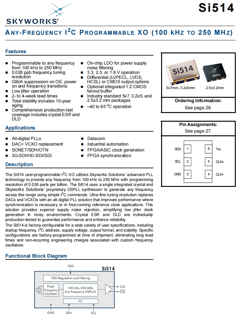 514FAA000115BAG,工業(yè)自動化晶振,Si514數(shù)據(jù)傳輸晶振
