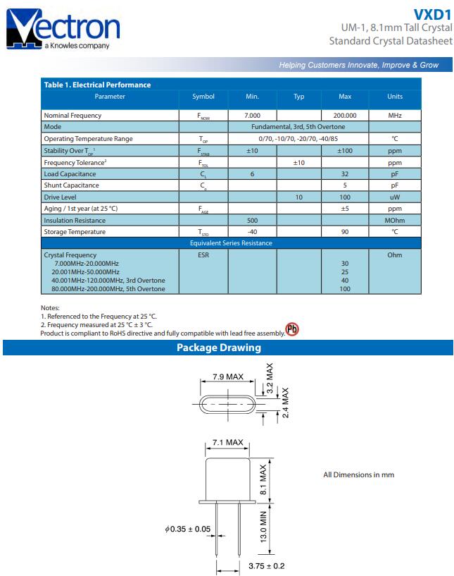 | Nominal Frequency | 7.000~200.000MHZ |