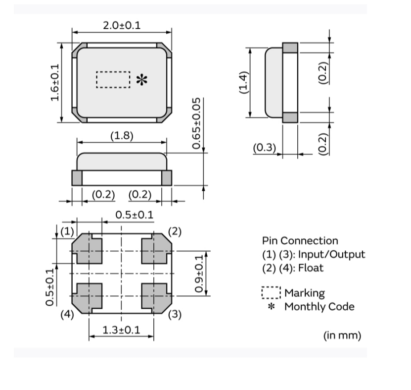 Size/Dimension尺寸 | 2.00mm x 1.60mm | 安裝方式MountingStyle: | SurfaceMount |
